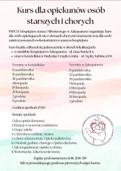 Kurs skierowany jest dla osób opiekujących się w domach straszymi i chorymi. Uwaga - nie muszą to być pacjenci naszego Hospicjum. Na Kurs zapraszamy również tych, którzy są zainteresowani wolontariatem w naszym Hospicjum.