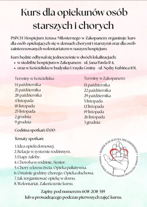 Już w październiku rozpoczynamy bezpłatny Kurs dla opiekunów osób starszych i chorych.